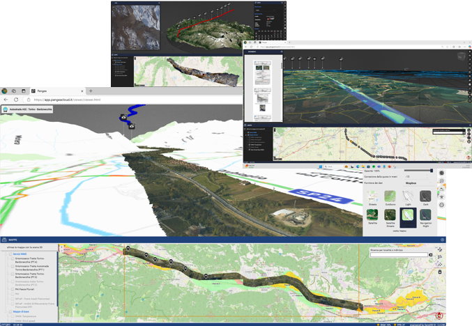 Strumenti avanzati supportano il caricamento di immagini satellitari ottiche e multi/iper-spettrali, nuvole di punti (da Gb a Tb) provenienti da UAV, MMS, TLS, SLAM, ROV, ispezioni con camere a 360°, e dati da DTM/DEM. Archivia analisi di laboratorio, relazioni tecniche, manuali O&M, e collegamenti esterni. Integra servizi di terze parti, geoportali, videosorveglianza e molto altro.
